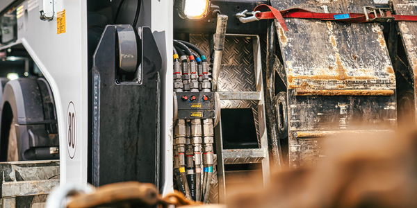 Der hydraulisch abfahrbare Schwanenhals ermöglicht einen sicheren und fast ebenerdigen Beladevorgang von vorne. Alternativ kann das Fahrzeug über die Alurampen am Heck mit kleineren Baumaschinen beladen werden. „Das Tiefbett ist so niedrig, dass man sogar von der Seite mit dem Bagger auffahren kann – das erfordert natürlich etwas Fingerspitzengefühl und Erfahrung“, ergänzt Schneider. Beim Rangieren auf der Baustelle bietet eine integrierte Rückfahrkamera zusätzliche Sicherheit. „Wenn der geladene Bagger drei Meter breit ist, hat man nach hinten praktisch keine Sicht mehr. Die Rückfahrkamera ist für mich kein Extra, sondern eine echte Sicherheitsfunktion – vor allem auf unübersichtlichen Baustellen.“
