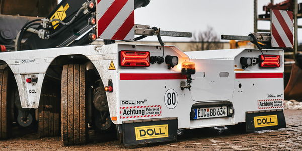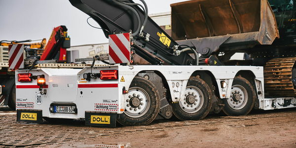 Beim Transport großer Baumaschinen wie Baggern oder Radladern zählt nicht nur das Gewicht – entscheidend ist auch die Transporthöhe. Überschreitet sie vier Meter, sind teure Sondergenehmigungen erforderlich. Für Transporteure bedeutet das: mehr Bürokratie, längere Planung, höhere Kosten. Um dies zu vermeiden, setzt das Baumaschinenunternehmen Bode auf das DOLL® Tiefbett X mit der Pendelachse DOLL tera®. Mit dem 3-achsigen Tiefbettsattelauflieger lassen sich selbst Bagger bis zu einer Transporthöhe von 3.700 mm innerhalb der gesetzlich vorgeschriebenen Maximalhöhe transportieren. Auch im Handling hat das Fahrzeug Bode Bautechnik überzeugt: Dank der DOLL®-eigenen elektronischen Assistenzsysteme kann der Fahrer alle zentralen Aufliegerfunktionen vom Fahrersitz im Lkw aus steuern – ein echter Vorteil im Baustellenalltag.