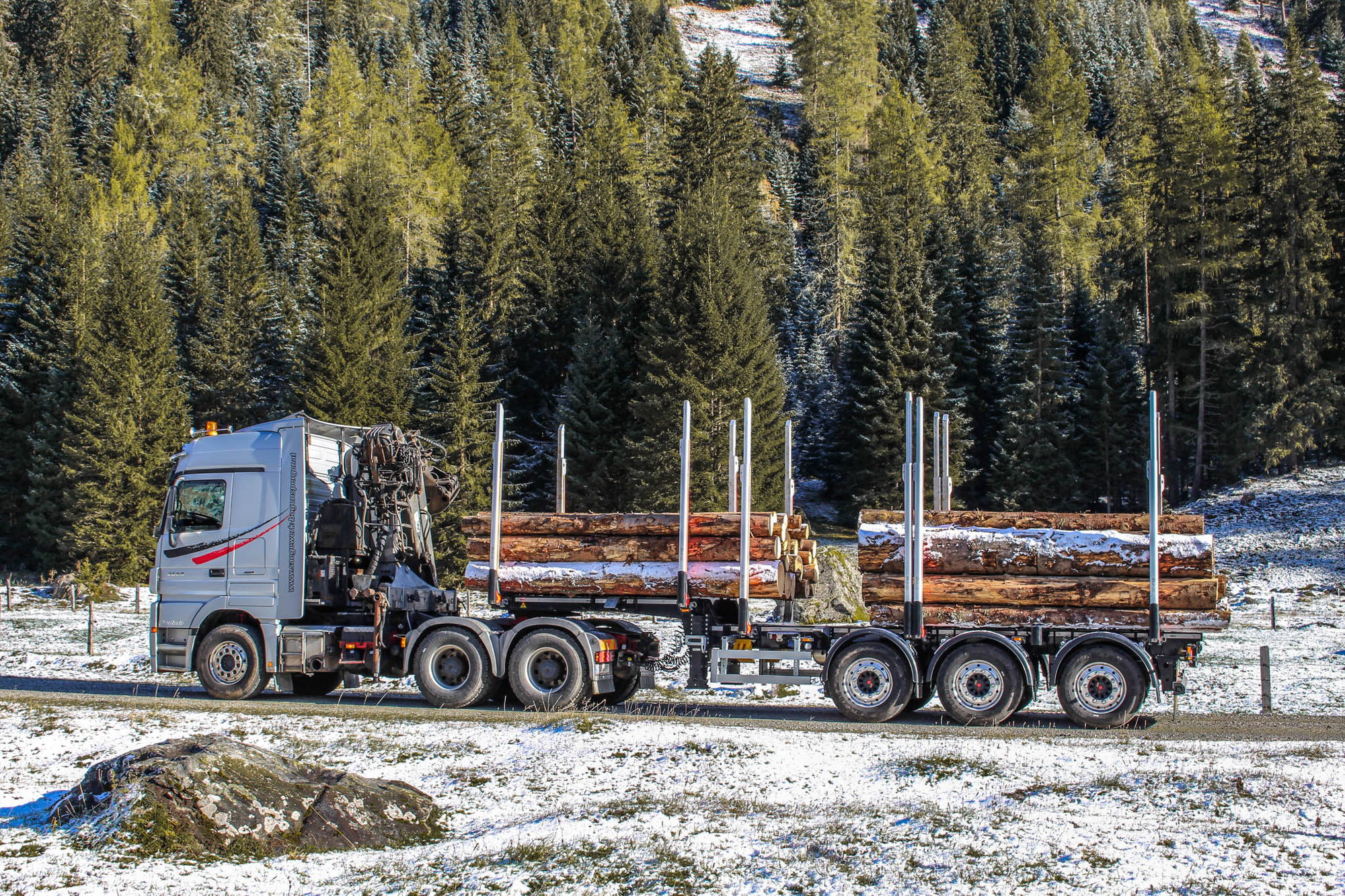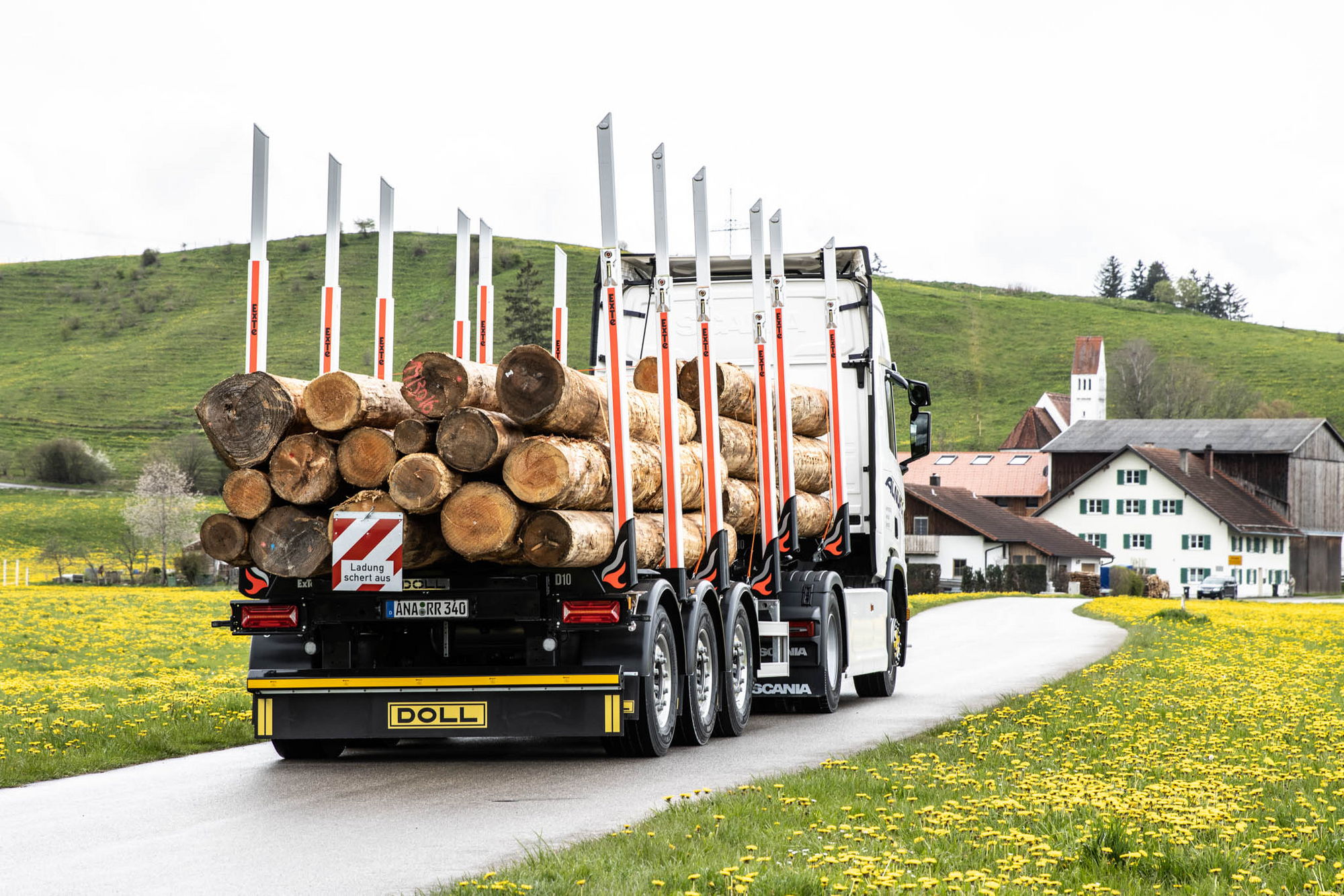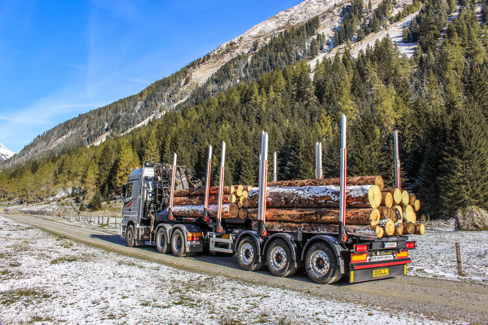 Beim Holztransport kommt es darauf an, pro Fahrt so viel Holz wie möglich zu transportieren. Nur dann ist eine Tour wirtschaftlich. Auch die Wendigkeit und Stabilität der Fahrzeuge sind aussschlaggebend. Genau dies sind die Anforderungen, die der Fahrzeugbauer „DOLL TimTech“ bei der Entwicklung seiner Fahrzeuge in den Mittelpunkt stellt. Das Ergebnis sind Modelle wie der DOLL® Sattelauflieger „LOGO 10“, bei dem Lademenge und Nutzlast optimal ausgelegt wurden. Das Fahrzeug ist ein echtes Erfolgsmodell: Seit seiner Markteinführung vor zwei Jahren wurde es bereits über 30 Mal ausgeliefert. Der DOLL® Sattelauflieger „LOGO 10“ zeichnet sich durch ein niedriges Eigengewicht und eine tiefe Ladefläche aus. Dadurch verfügt er über eine hohe Nutzlast und eine der niedrigsten Ladehöhen auf dem Markt. Auch die Beladung ist mit dem DOLL® Logistikonzept besonders effizient möglich: Dabei wird nur noch ein LKW mit Kran benötigt. Dieser wird für die Beladung eingesetzt, während Sattelzugmaschinen ohne Kran die Sattelauflieger von der Beladestelle zur Entladestelle transportieren. Auf diese Weise können Speditionen in der gleichen Zeit deutlich mehr Holz transportieren.
