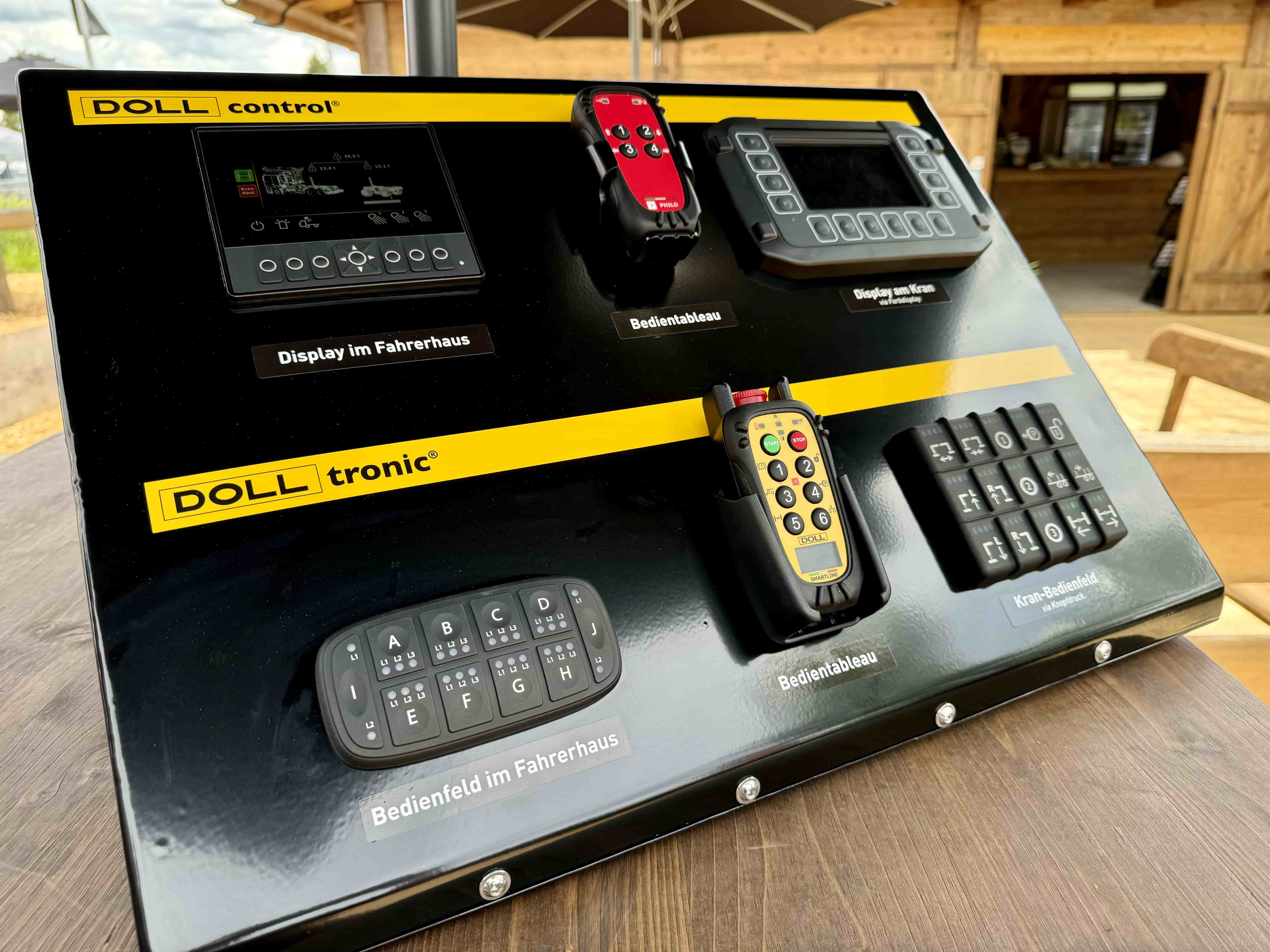 Auf knapp 1.000 Quadratmetern zeigte DOLL® auf der KWF in Schwarzenborn (Hessen) vom 19. bis 22. Juni insgesamt zehn Fahrzeuge. DOLL® stellte auf der Messe mehrere technologische Neuheiten und Innovationen vor. So sind die Langholzzüge und Sattelauflieger der LOGO-Baureihe erstmals mit dem innovativen Display-Assistenzsystem DOLL control® erhältlich. Ein Farbdisplay unterstützt den Fahrer bei Beladung und Transport der Güter. Das bereits im Holztransport etablierte Assistenzsystem DOLL tronic® zeigte das Unternehmen in einer weiterentwickelten Version. Beide Assistenzsysteme unterstützen die Steuerung des gesamten Fahrzeuges inklusive Kran und Auflieger sowie Nachläufer. „Der Transport von Holz wird mit DOLL tronic® und DOLL control® deutlich einfacher und noch einmal sicherer“, betont Martin Sturm, Geschäftsführer von DOLL TimTech. „Diese Technologien, die bereits bei anderen DOLL®-Fahrzeugen zum Einsatz kommen, stehen damit nun auch unseren Holztransport-Kunden zur Verfügung.“
