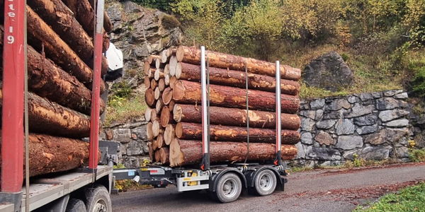 Eine weitere Stärke des kompakten Tandemanhängers, der für den Transport eines 4 bis 5 Meter langen Holzstoßes ausgelegt ist: „Das komfortable Rangieren, vor allem beim Rückwärtsfahren“, betont Bruno Gasser. Das stabile Y-Zugrohr des Anhängers erlaubt einen Einschlagwinkel von bis zu 90 Grad. So kommt der Kurzholzzug auch durch enge Haarnadelkurven. Durch die Zwillingsbereifung garantiert der Zentralachsanhänger auch auf unbefestigten Straßen eine hohe Fahrstabilität. Die niedrige Ladehöhe sorgt für einen tiefen Schwerpunkt und damit für eine bessere Straßenlage.