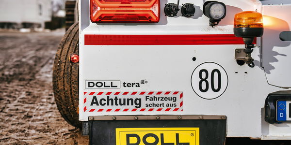Ebenfalls bei DOLL® NEXT serienmäßig an Bord: das digitale Assistenzsystem DOLL tronic®. Damit greift der Fahrer über ein Keypad am Schwanenhals auf alle zentralen Funktionen des Aufliegers zu. Die Ausstattungsvariante DOLL control® ersetzt das Keypad durch ein 7-Zoll-Farbdisplay und macht Reifendruck, Gewichtsverteilung, Lastpositionierung sowie die Position der Abdrückzylinder auf einen Blick sichtbar. Alle Funktionen von DOLL control® lassen sich auch über die Funkfernbedienung DOLL connect® steuern. So kann der Fahrer aus dem Fahrerhaus in die Lenkung des Aufliegers eingreifen, die Fahrhöhe anpassen oder zuvor eingestellte Fahrniveaus wählen. Nach manuellem Nachlenken genügt ein Knopfdruck, und die Elektronische Einspurung (EEP) berechnet automatisch den optimalen Lenkwinkel. Der Auflieger spurt auch bei langsamer Kurvenfahrt zuverlässig wieder ein.