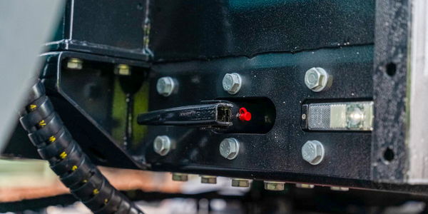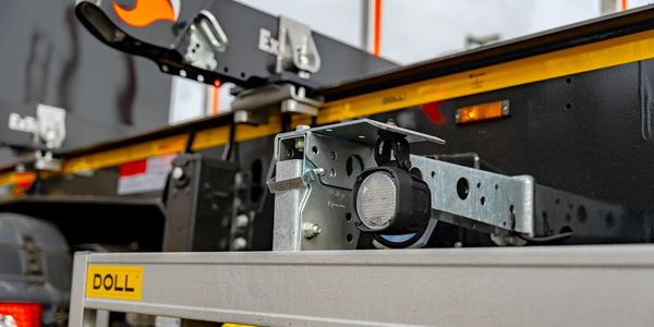 Neben der Rahmenkonstruktion überarbeiteten die DOLL®-Entwickler auch die Stirnwand komplett. Die vier Stirnwandstützen sind nun direkt mit dem Rahmen verschraubt. Die neue, verstärkte Anbindung sorgt für deutlich mehr Stabilität und macht das ca. 2,5 Meter hohe Bauteil insbesondere im Gelände weniger anfällig für Schwingungen. „Kaum ein Bauteil wird beim Holztransport stärker beansprucht als die Stirnwand“, erläutert Gerber. „Sie muss Stöße beim Beladen aufnehmen und den ständigen Vibrationen auf Forstwegen dauerhaft standhalten.“