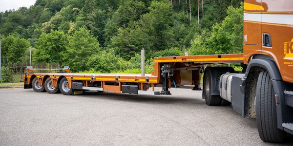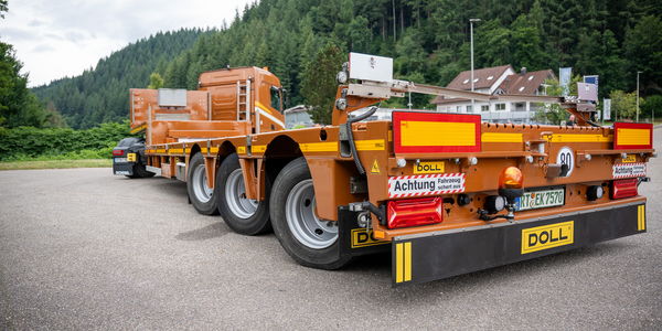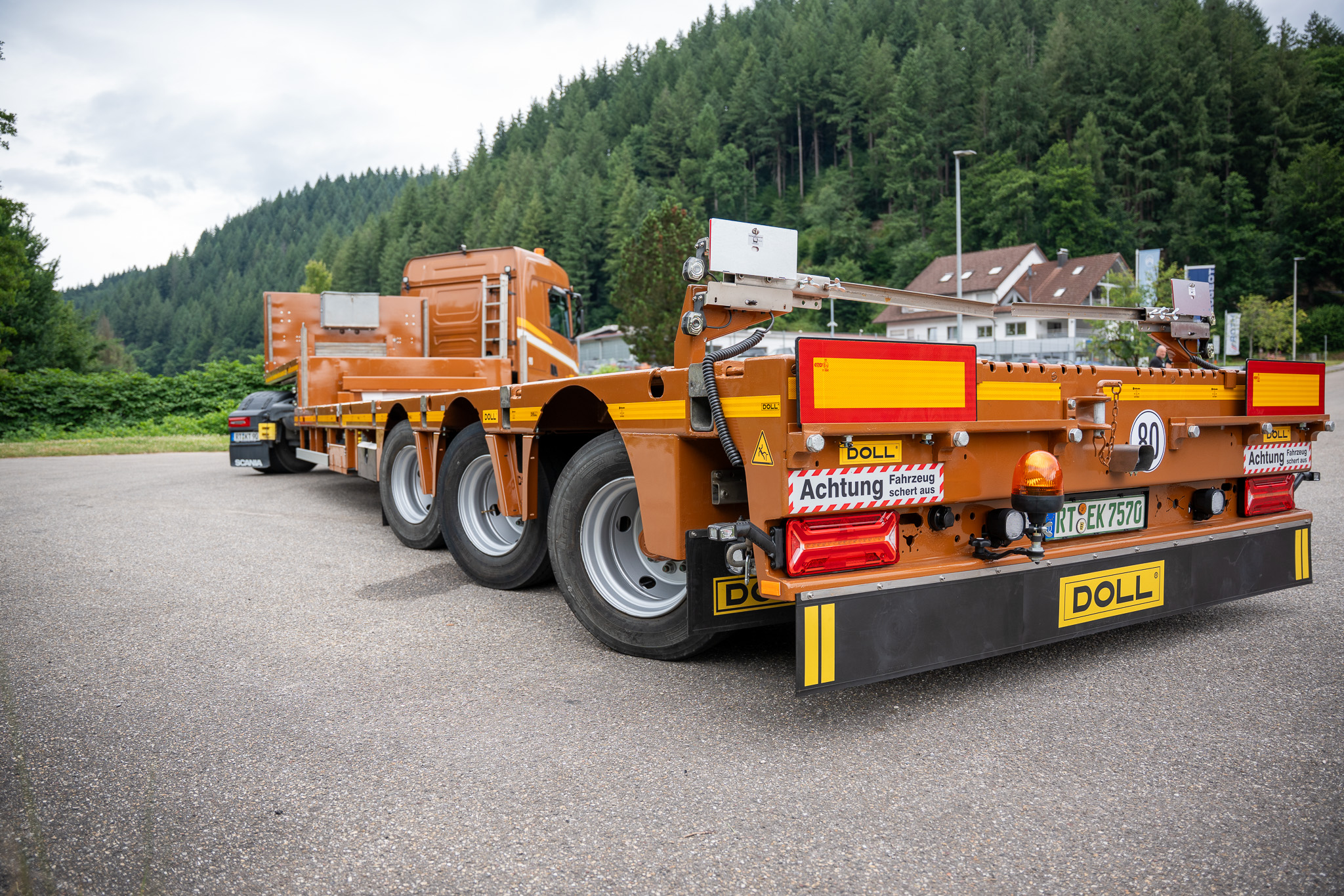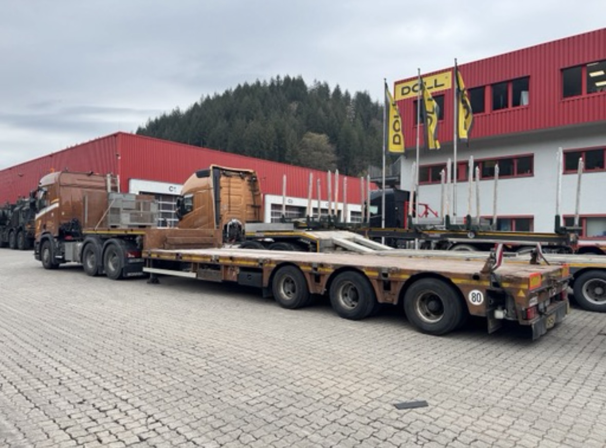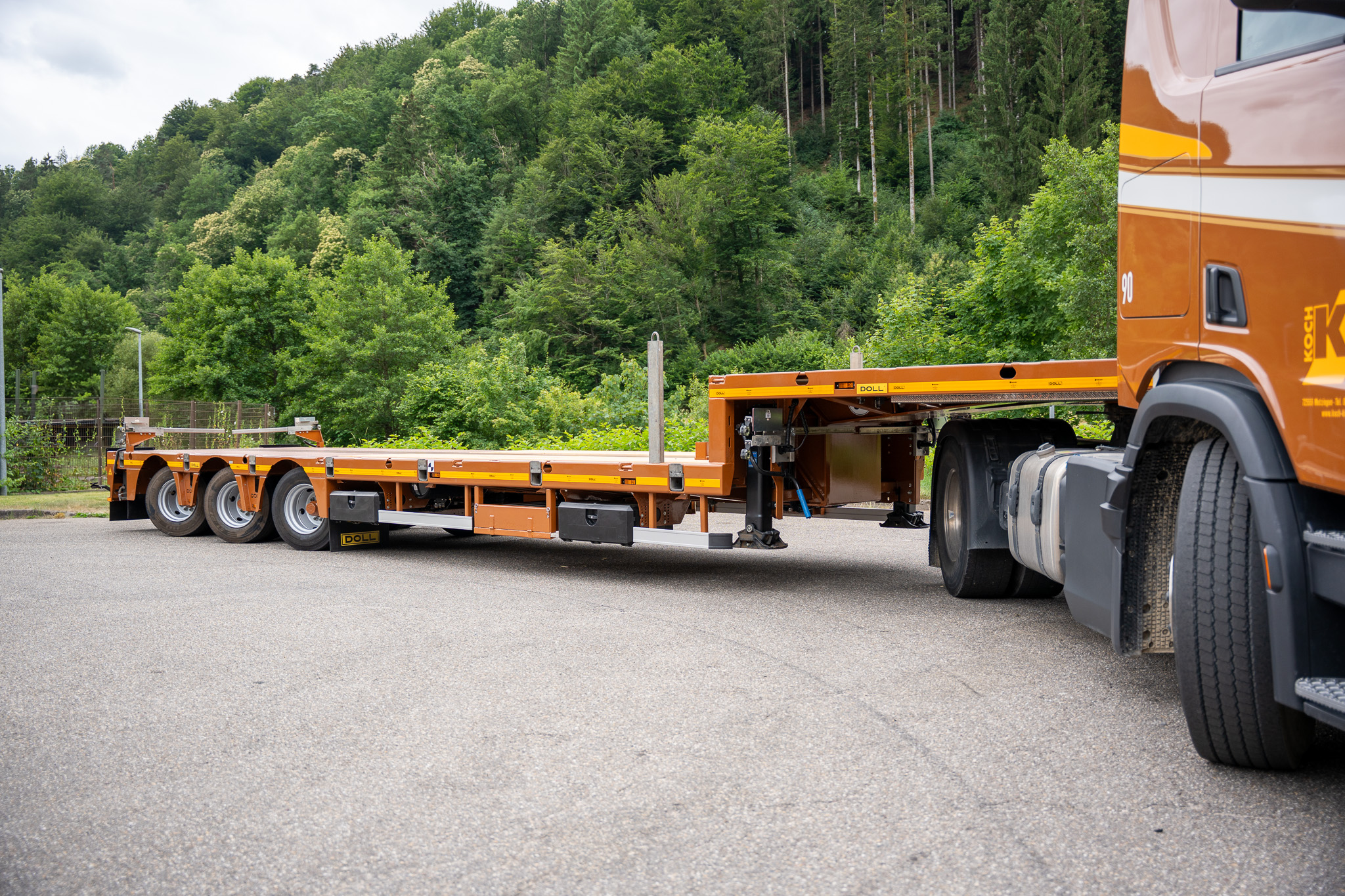 Die Firma Koch aus Metzingen bei Stuttgart transportiert Fertiggaragen, Betonteile und schwere Baumaschinen – oft mit einem Gesamtzuggewicht von über 100 Tonnen. Das rund 70 Mitarbeiter starke Familienunternehmen führt zwei Kieswerke und zählt in der Region zu den führenden Anbietern für Schwer- und Spezialtransporte. Für den Transport von überbreiten Garagen nutzt die Firma Koch seit mittlerweile 13 Jahren mehrere 3-Achs-Semi-Auflieger des Spezialfahrzeugbauers DOLL®. Nach einer Laufleistung von über 400.000 Kilometern standen bei einem der Auflieger nun die typischen Reparaturen an: „Neue Luftbehälter, Federbälge, Achsaufhängungen – ab einem gewissen Alter stehen naturgemäß bestimmte Verschleißteile auf der Liste und man muss sich fragen, ab wann sich eine Neuanschaffung eher lohnt,“ sagt Robert Metzger, Fuhrparkmanager bei Koch. „Unser eigentlich gut erhaltenes Fahrzeug einfach auszumustern, kam für uns nicht infrage. Trotzdem wären weitere Reparaturen auf Dauer unwirtschaftlich gewesen. Deshalb haben wir uns für eine komplette Wiederaufbereitung bei DOLL® entschieden.“