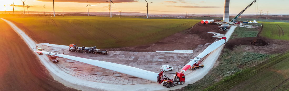 - Pour des pales d'éoliennes d'une longueur pouvant atteindre 100 m et un poids de 35 t
